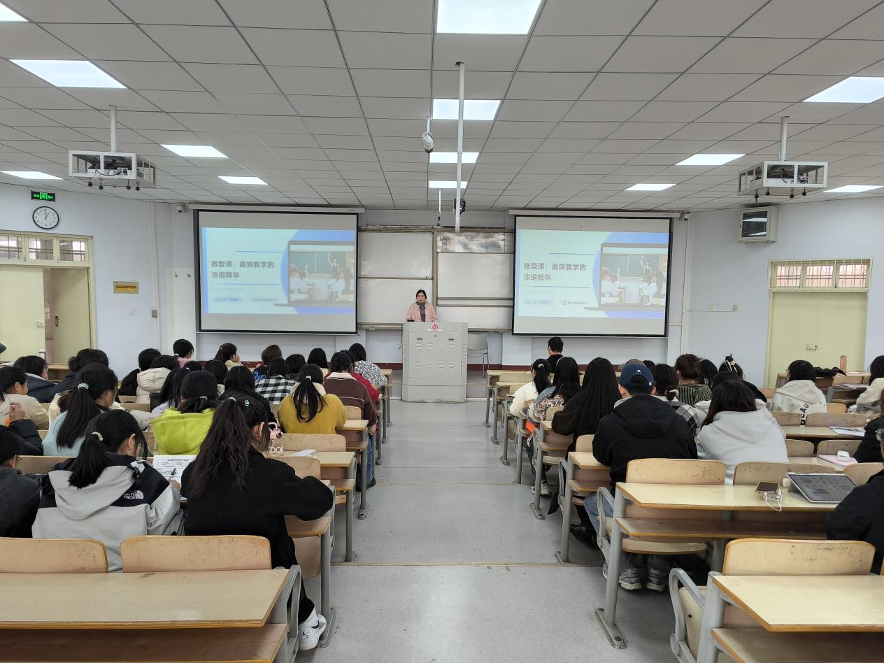 祖老师以《微型课:高效教学的浓缩精华》为题进行了专题辅导报告。她从什么是微型课,微型课的特点,教学设计制作的要点,微型课讲授技巧等方面进行阐述。并结合自己备赛时的一些微型课教学案例,与同学们一起交流上好一节微型课的流程和技巧,加深了同学们对微型课的理解