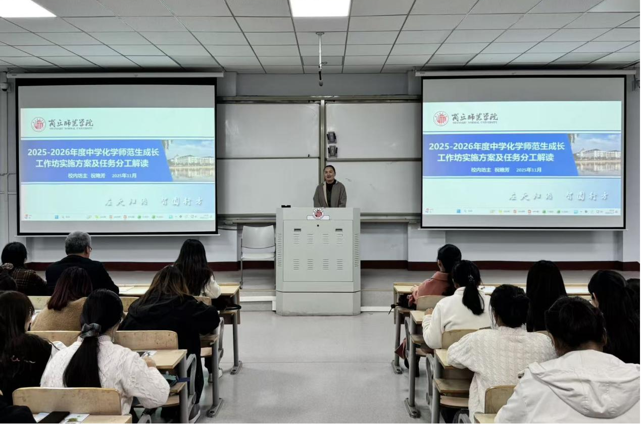 第三阶段,工作坊校内坊主祝艳芳从师范生成长工作坊的实施背景以及本年度秋季学期的任务安排等方面详细解读了《2025-2026学年“人工智能+”中学化学师范生成长工作坊工作实施方案》,并希望同学们能向下扎根、向上生长,为提高自身教育教学素养而不断努力。