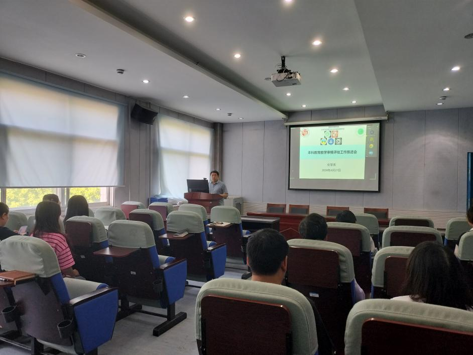 为进一步推进教师教育教学改革,提高本科教学质量,统一思想、营造评估氛围,4月27日,化学系在化学实验楼311会议室召开本科教育教学审核评估工作动员会议。化学系全体任课教师及化学专业部分学生代表参加,会议由系主任董辉主持。
