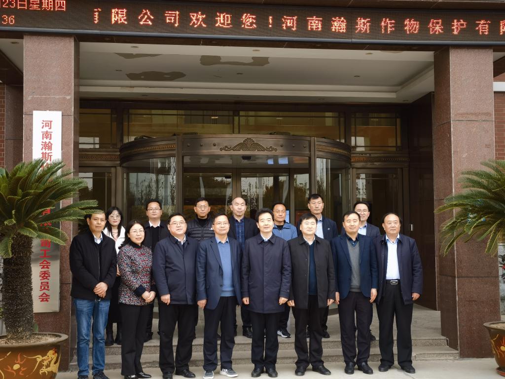 河南瀚斯作物保护有限公司总经理申艳林,副总经理申先锋、赵强陪同陈向炜校长一行参观了公司党建办公室、工会办公室、职工书屋、展览室、研发中心和生产区产品仓库、生产车间等,了解了瀚斯党建、工会工作开展和发展、管理、研发、生产等方面的情况。