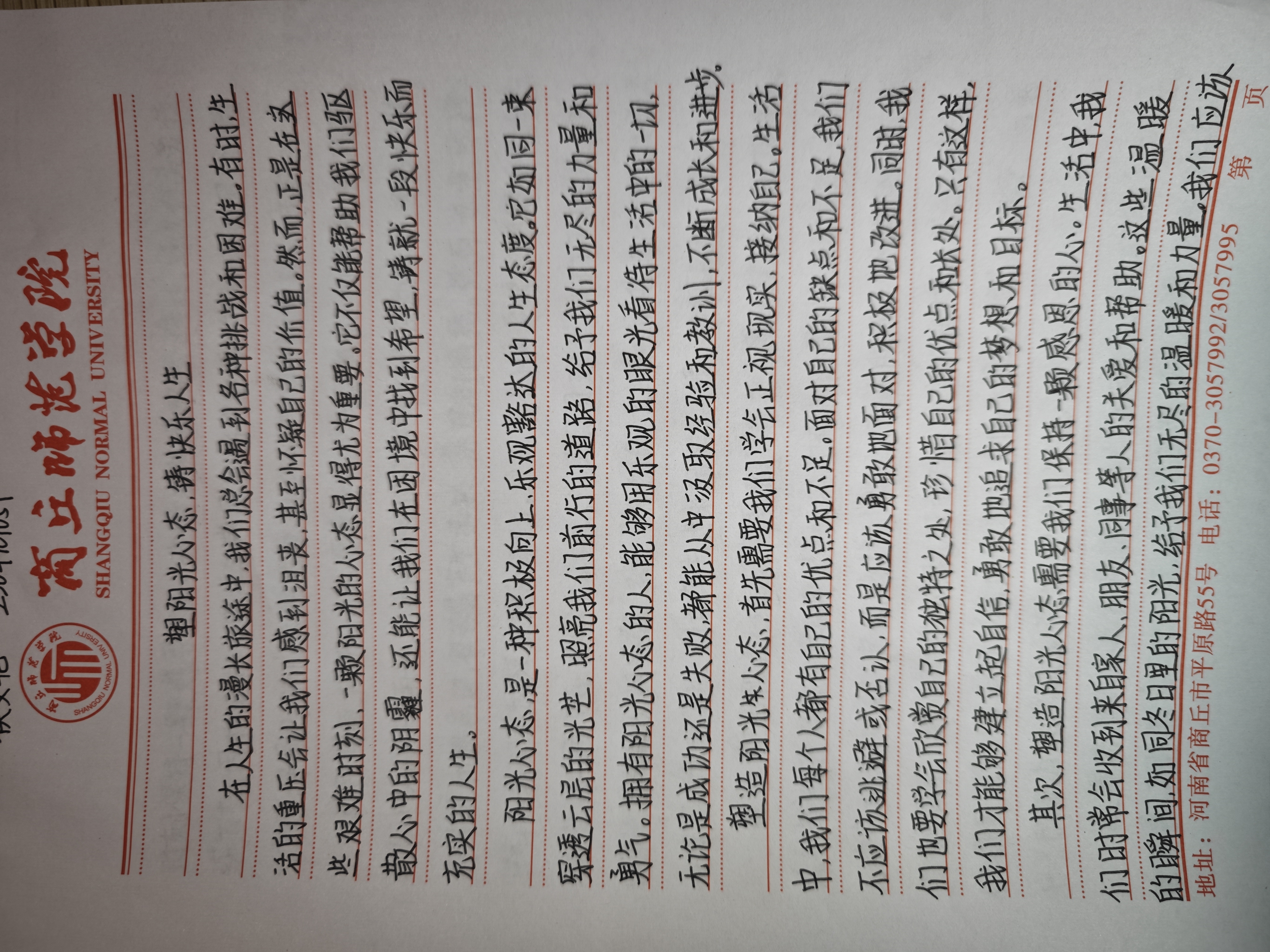 此次活动受到了同学们的积极响应。活动期间,同学们遵守活动纪律,积极投入,认真思考,充满极高的热情。他们用文字描绘阳光心态,分享那些温暖人心的故事、积极向上的感悟,用独特的视角和新颖的表达方式,让文章充满了趣味性和启发性。期望这次活动以后,同学们能正确认识自己的内心世界,提升自信心,践行阳光心态,构筑快乐人生。